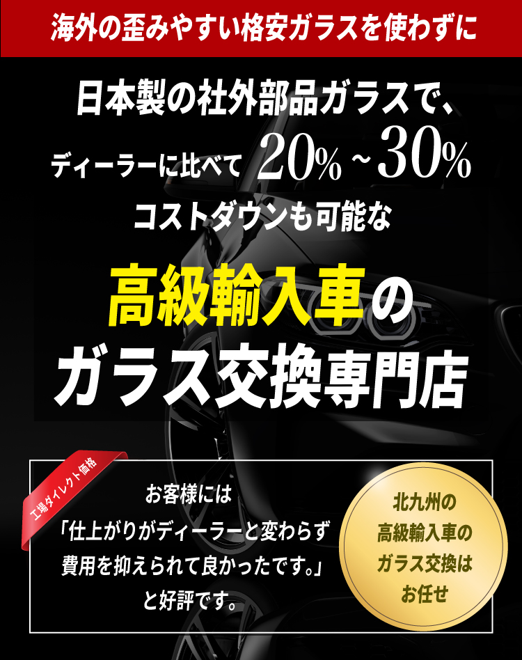輸入車は維持費が高くて困ります。ちょっとした修理でもびっくりしますが、ガラスの交換も困っていたところ、こちらを知ることが出来てお願いしました。