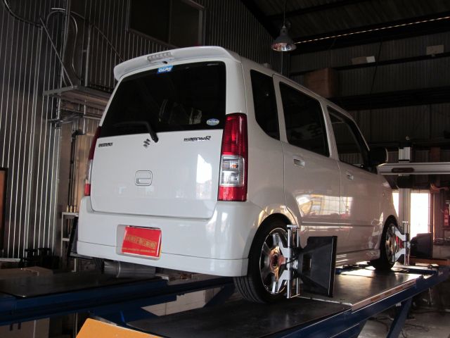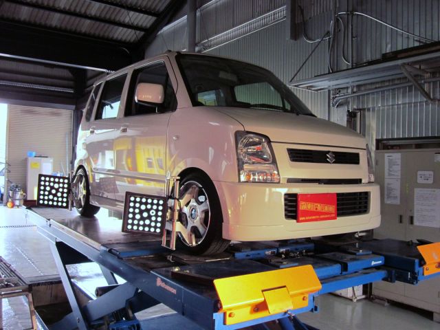 今回、坂本自動車からご紹介します車両は、スズキ ワゴンR(SUZUKI WAGONーR)の4輪アライメント調整です。