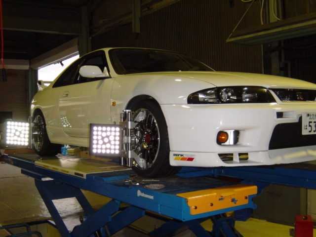 今回のご紹介はスカイラインGTR33です。 マフラー交換及び、AWタイヤ交換、一緒に4輪アライメント調整を行います。